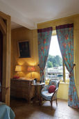 La Suite du donjon peut accueillir jusqu'à 4 personnes en chambres d'hôte dans le donjon médiéval du château, offrant un séjour plus intimiste, idéal pour les familles. On y accède par un petit escalier étroit et mystérieux. La Suite dispose d'une chambre double avec un lit à baldaquin king size et bénéficie d'une double exposition, deux chambres single donnant sur la cour intérieure ou le parc, une salle de bain avec WC, totalement équipée et rénovée et une charmante petite terrasse avec vue sur le parc.